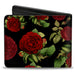 Bi-Fold Wallet - Red Rose Blooms Buds Black Greens Reds