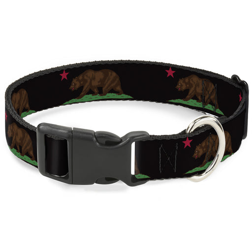 Dog Bone Seatbelt Buckle Collar - CALIFORNIA REPUBLIC/Bear/Stars Silhouette Black/Scenic Mountains