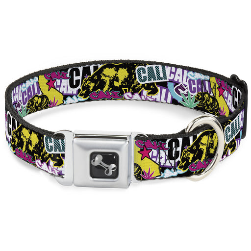 Dog Bone Seatbelt Buckle Collar - Cali Bear/CALI Graffiti/Pot Leaves Black/Multi Color