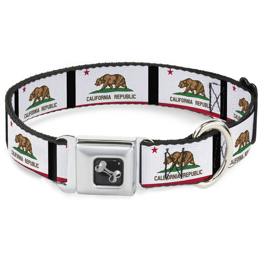 Dog Bone Seatbelt Buckle Collar - California State Flag White