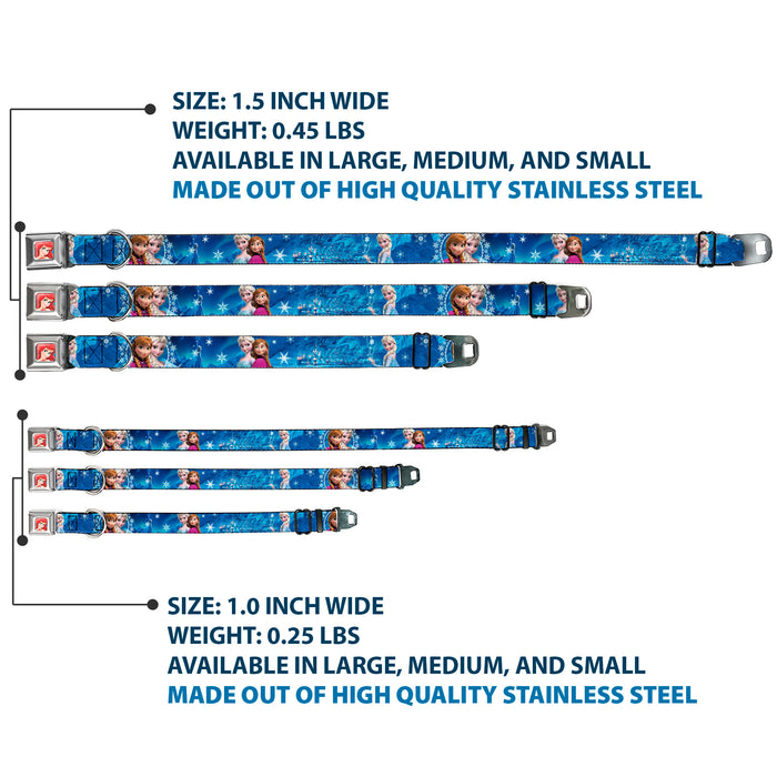 Frozen Elsa the Snow Queen Pose Snowflakes Full Color Blue White Seatbelt Buckle Collar - Anna & Elsa Poses/Castle & Mountains Blues