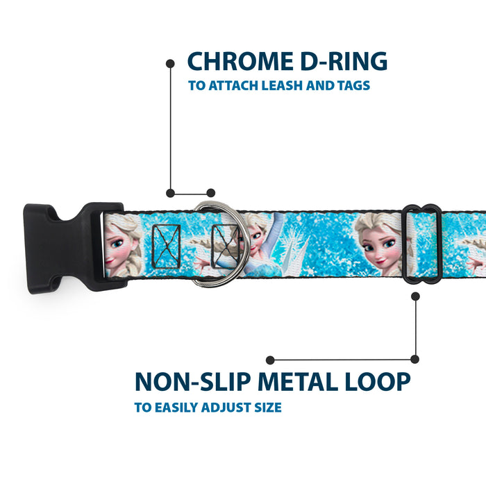 Plastic Clip Collar - Frozen Elsa Face/Action Pose/Snowflakes Blues/White