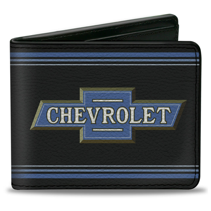 Bi-Fold Wallet - 1916 Chevrolet Bowtie Logo Stripes Black Blue