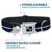 Collar con hebilla de cinturón de seguridad negro/plateado de hueso de perro - Bandera de línea blanca delgada desgastada en negro/azul/blanco