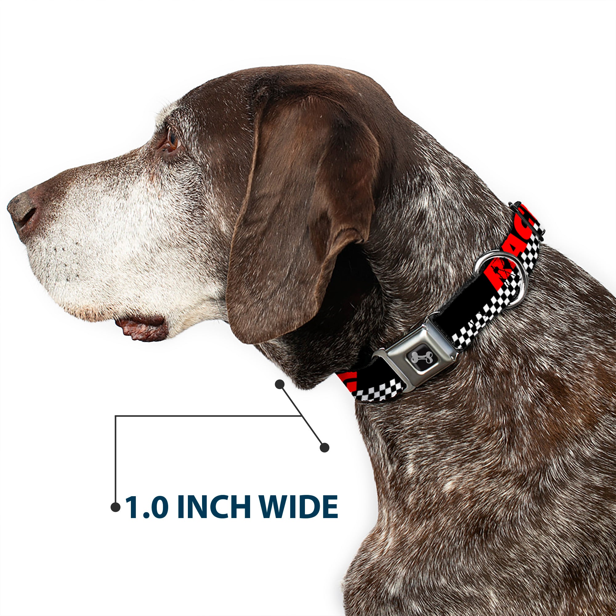 Collar con hebilla para cinturón de seguridad de hueso de perro - RACING con cuadros negro/blanco/rojo