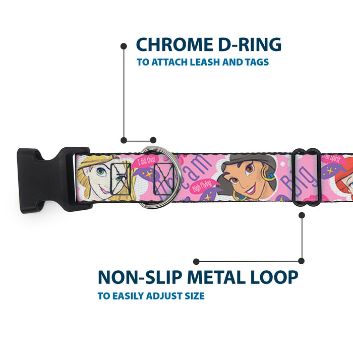 Plastic Clip Collar - Disney DREAM BIG PRINCESS Faces Pinks/Purples