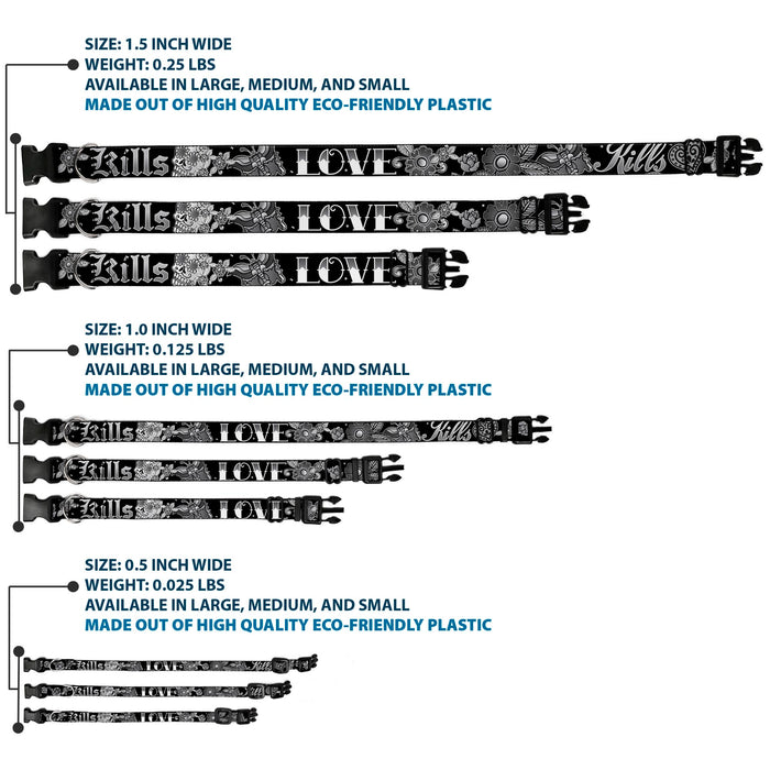 Collar Clip Plástico - Love Kills Negro/Blanco