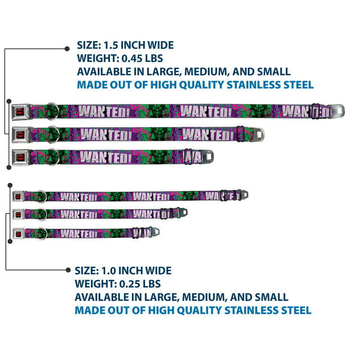 Batman Black/Yellow Seatbelt Buckle Collar - THE JOKER WANTED Smiling Pose and Graffiti Purples/Greens