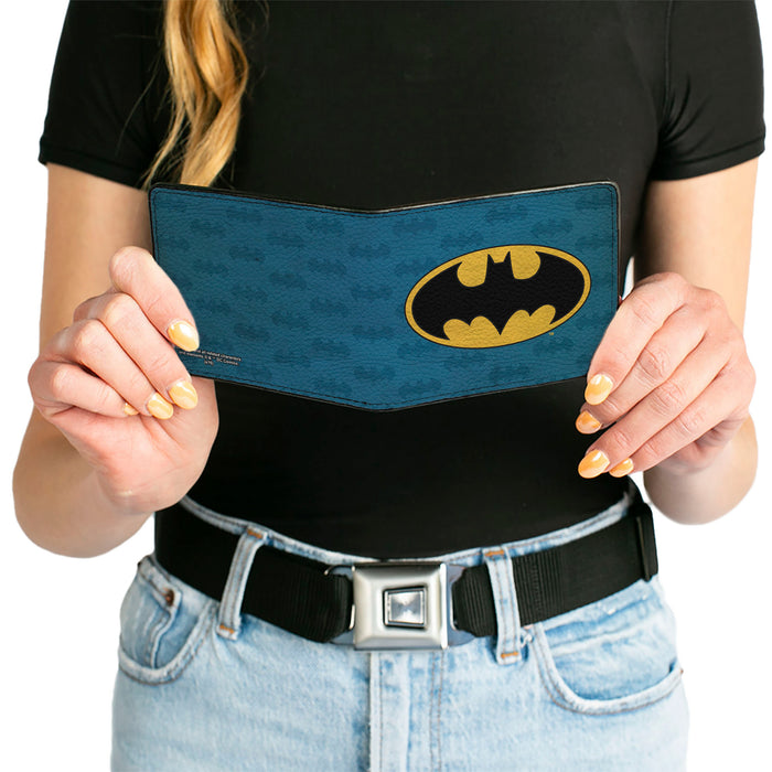 Bi-Fold Wallet - Batman Signal Bat Monogram Distressed Blues Black Yellow