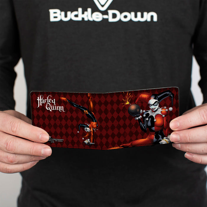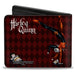 Bi-Fold Wallet - HARLEY QUINN w Batman Voodoo Doll Holding Bomb + Hand Stand Diamonds Reds White