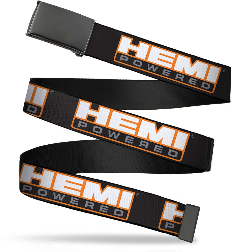 Black Buckle Web Belt - HEMI POWERED Logo Repeat Black/Orange/White/Gray Webbing