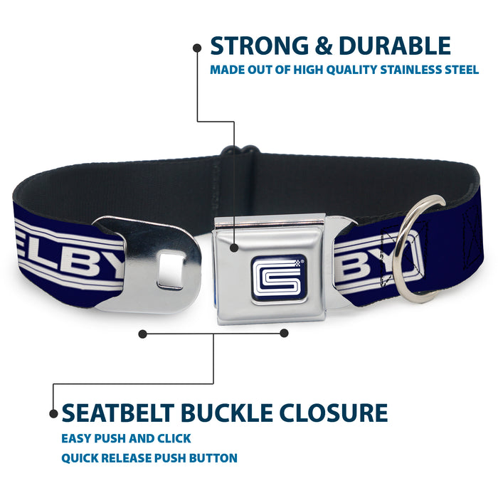 Carroll Shelby CS Racing Logo Full Color Navy/White Seatbelt Buckle Collar - Carroll Shelby CS SHELBY Racing Logo Block Navy/White