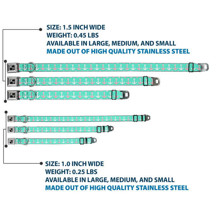 Dog Bone Seatbelt Buckle Collar - Anchor2 CLOSE-UP Green/Pink/White