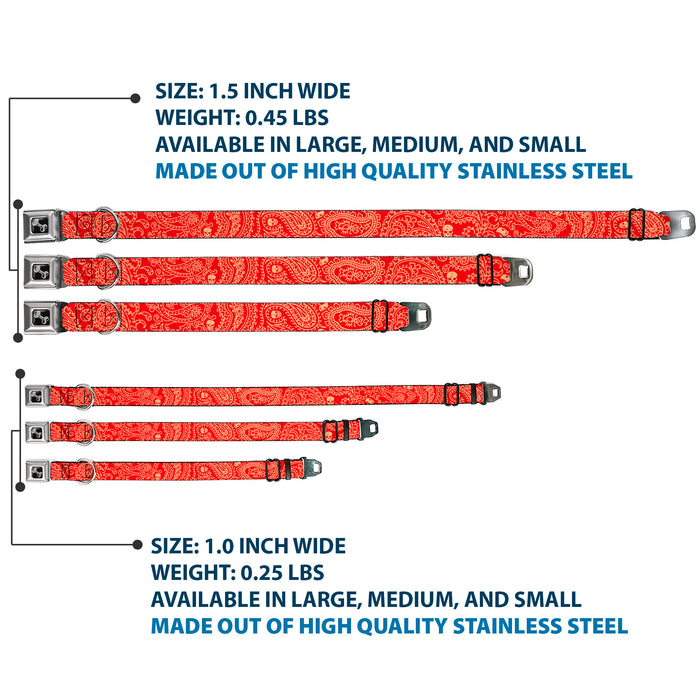 Dog Bone Seatbelt Buckle Collar - Bandana/Skulls Scarlet Red/Gold