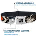 - Made from high-density polyester and durable steel components, this collar is built to last and features beautiful vibrant artwork.