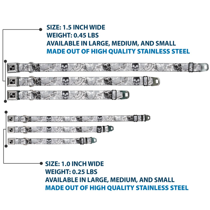 Dog Bone Seatbelt Buckle Collar - BD Skull w/Roses