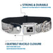 Your dog will be the talk of the town when people notice they're wearing this awesome SeatBelt Dog Collar! Made from high-density polyester and durable steel components, this collar is built to last. It features beautiful vibrant artwork. The buckle is a miniature authentic SeatBelt Buckle, so you press the center button to release the clasp. This product is Made in USA by Buckle-Down Inc. and officially licensed by Buckle-Down.