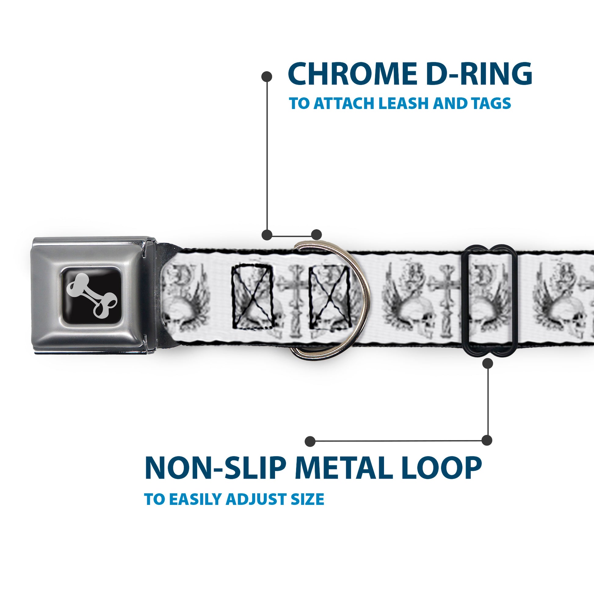 Dog Bone Seatbelt Buckle Collar - BD Skulls w/Wings White/Black