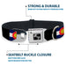 - Made from high-density polyester and durable steel components, this collar is built to last and features beautiful vibrant artwork.
