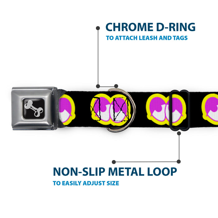 Dog Bone Seatbelt Buckle Collar - Dopey Eyes Black/Yellow/Purple