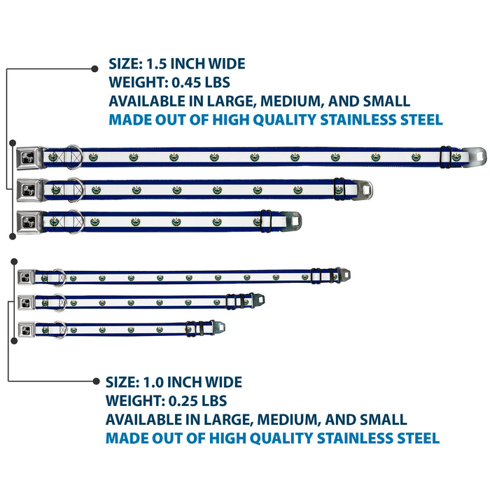 Your dog will be the talk of the town when people notice they're wearing this awesome SeatBelt Dog Collar! Made from high-density polyester and durable steel components, this collar is built to last. It features beautiful vibrant artwork. The buckle is a miniature authentic SeatBelt Buckle, so you press the center button to release the clasp. This product is Made in USA by Buckle-Down Inc. and officially licensed by Buckle-Down.