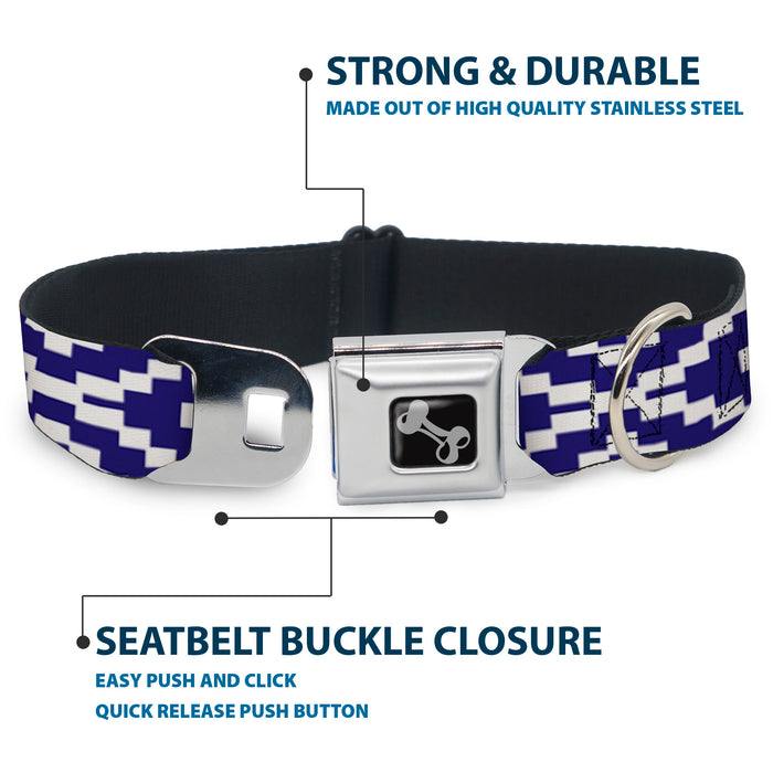 Dog Bone Seatbelt Buckle Collar - Geometric Diamond Blue/White