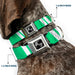 Dog Bone Seatbelt Buckle Collar - Hash Mark Stripe Double Green/Silver