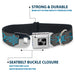- Made from high-density polyester and durable steel components, this collar is built to last and features beautiful vibrant artwork.