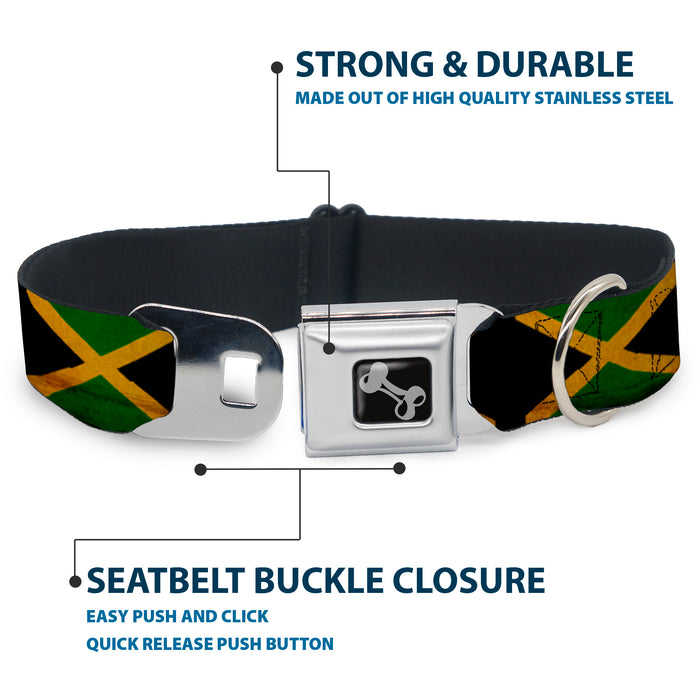 Dog Bone Seatbelt Buckle Collar - Jamaica Flags Vintage Black