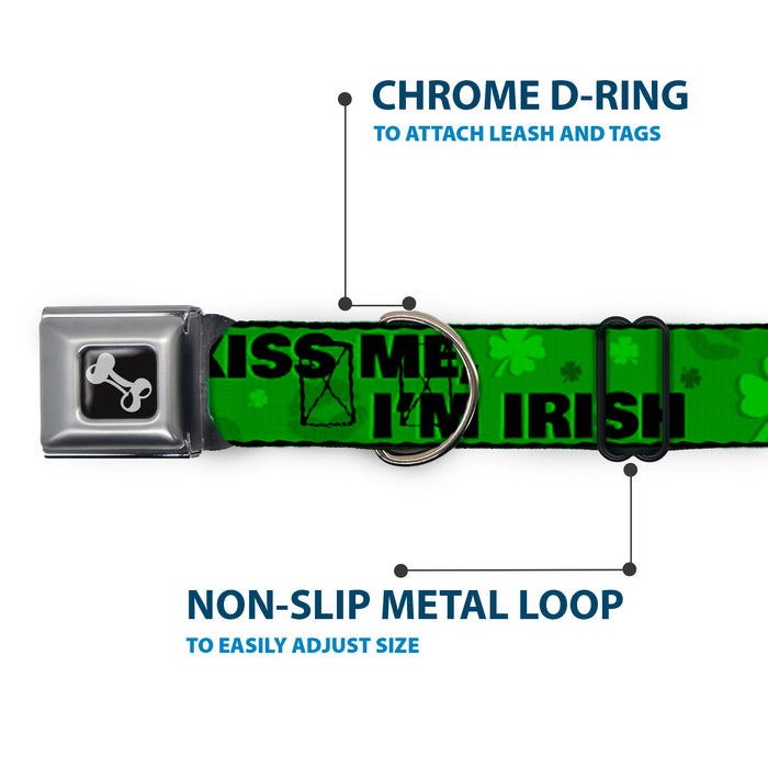 Dog Bone Seatbelt Buckle Collar - KISS ME, I'M IRISH! Clovers/Kisses Greens/Black