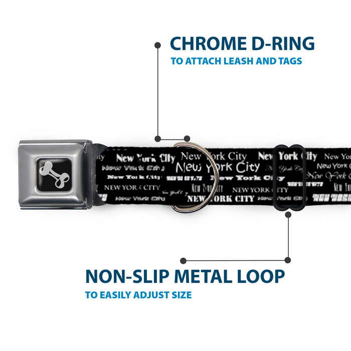 Dog Bone Seatbelt Buckle Collar - New York City Black/White
