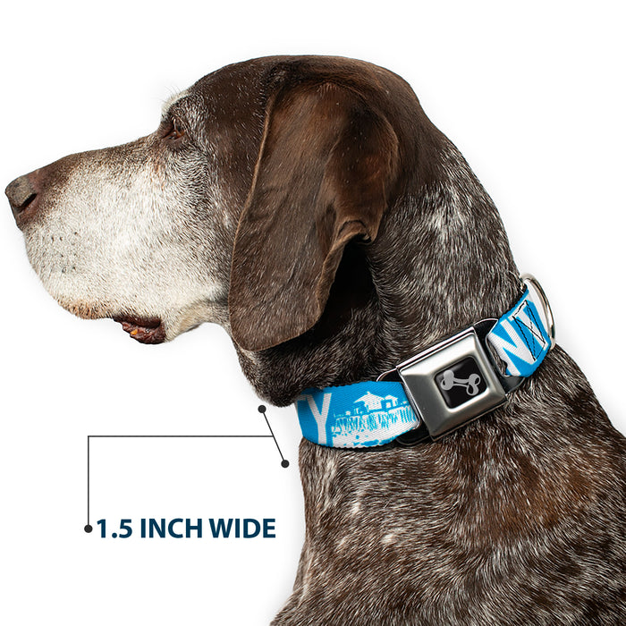Dog Bone Seatbelt Buckle Collar - ORANGE COUNTY/Pier Scene Blue/White