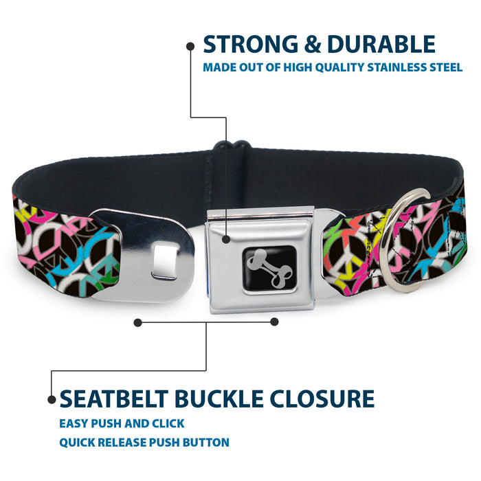 Dog Bone Seatbelt Buckle Collar - Peace Black/Multi Stripes