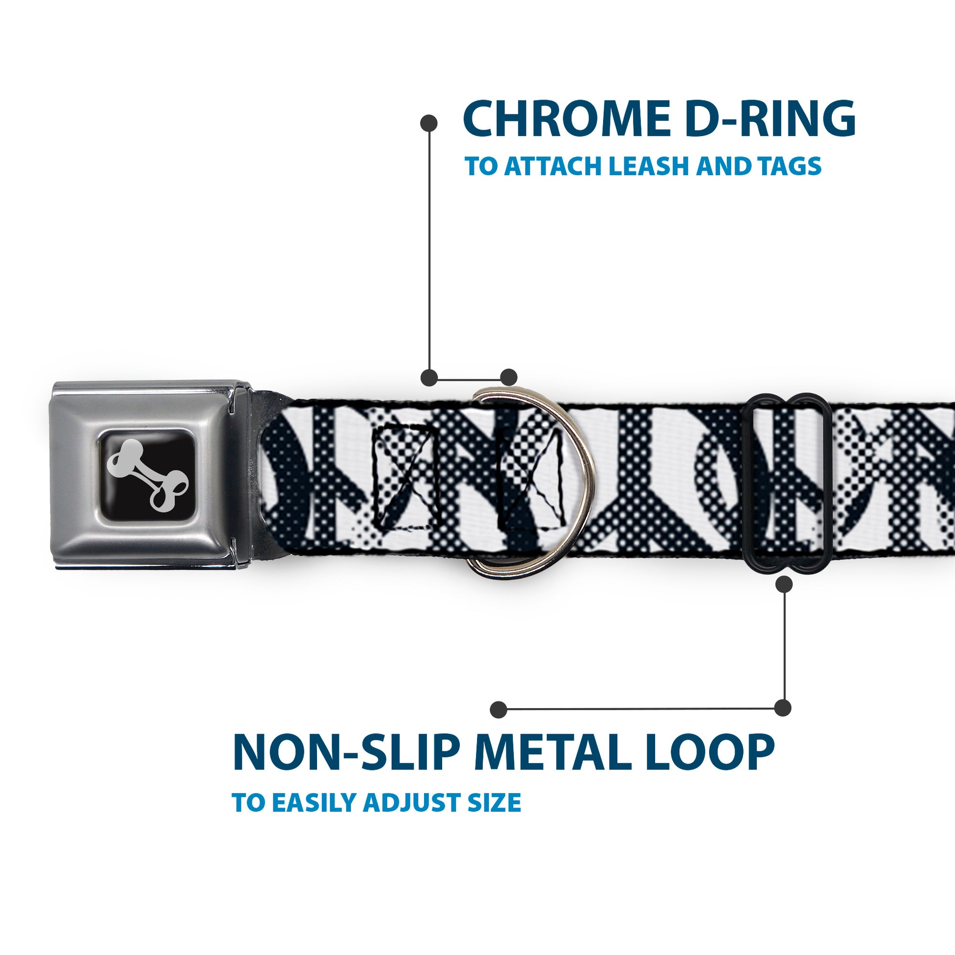 Dog Bone Seatbelt Buckle Collar - Peace Dots White/Black