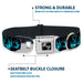 - Made from high-density polyester and durable steel components, this collar is built to last and features beautiful vibrant artwork.