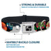 - Made from high-density polyester and durable steel components, this collar is built to last and features beautiful vibrant artwork.