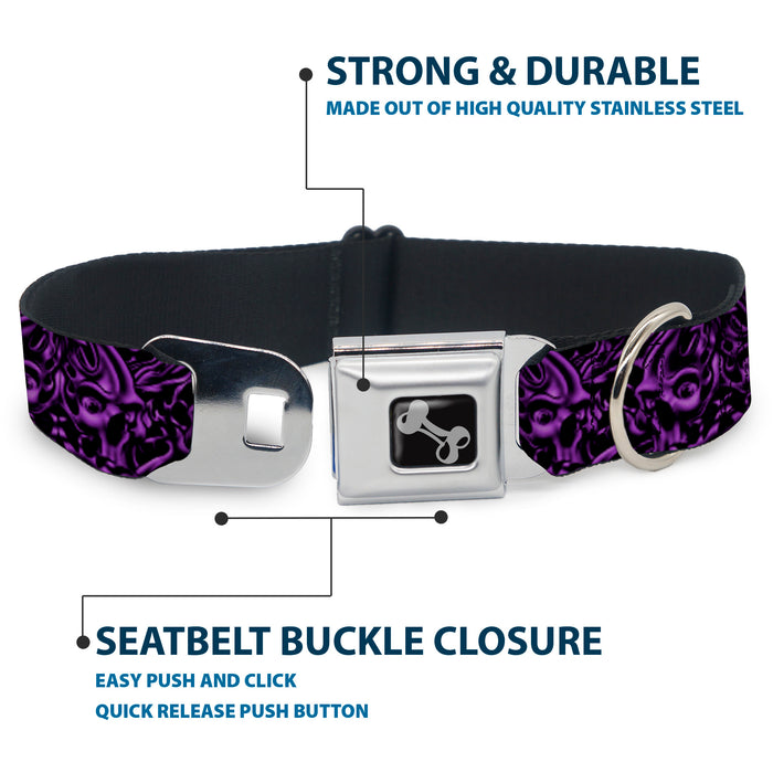 Dog Bone Seatbelt Buckle Collar - Sleeve Skulls Black/Purple