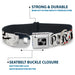 - Made from high-density polyester and durable steel components, this collar is built to last and features beautiful vibrant artwork.