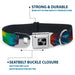 - Made from high-density polyester and durable steel components, this collar is built to last and features beautiful vibrant artwork.