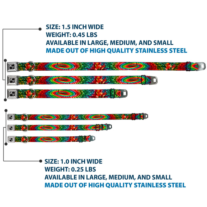 Your dog will be the talk of the town when people notice they're wearing this awesome SeatBelt Dog Collar! Made from high-density polyester and durable steel components, this collar is built to last. It features beautiful vibrant artwork. The buckle is a miniature authentic SeatBelt Buckle, so you press the center button to release the clasp. This product is Made in USA by Buckle-Down Inc. and officially Licensed by Tattoo Johnny.