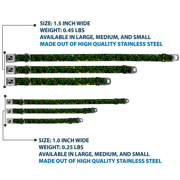 Your dog will be the talk of the town when people notice they're wearing this awesome SeatBelt Dog Collar! Made from high-density polyester and durable steel components, this collar is built to last. It features beautiful vibrant artwork. The buckle is a miniature authentic SeatBelt Buckle, so you press the center button to release the clasp. This product is Made in USA by Buckle-Down Inc. and officially Licensed by Tattoo Johnny.