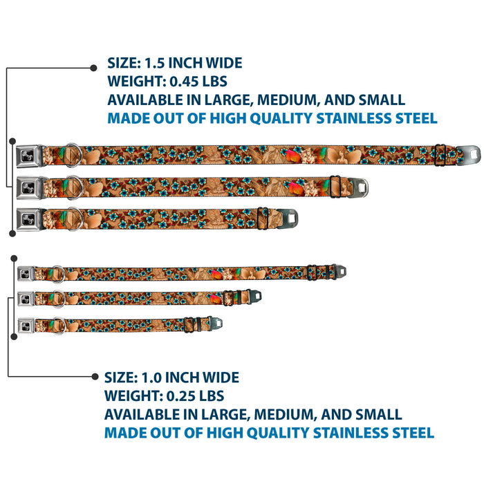 Your dog will be the talk of the town when people notice they're wearing this awesome SeatBelt Dog Collar! Made from high-density polyester and durable steel components, this collar is built to last. It features beautiful vibrant artwork. The buckle is a miniature authentic SeatBelt Buckle, so you press the center button to release the clasp. This product is Made in USA by Buckle-Down Inc. and officially Licensed by Tattoo Johnny.