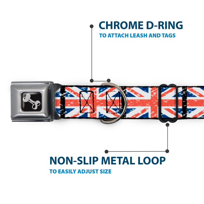 Dog Bone Seatbelt Buckle Collar - United Kingdom Flags Weathered