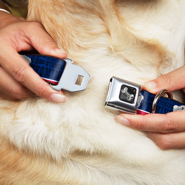 Dog Bone Seatbelt Buckle Collar - Wyoming Flags/WYOMING Typography