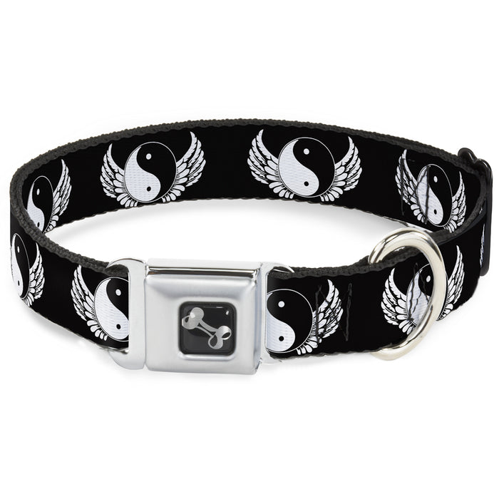 Dog Bone Seatbelt Buckle Collar - Yin Yang w/Wings Black/White
