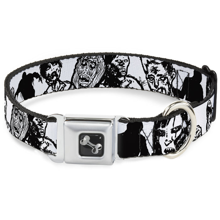 Dog Bone Seatbelt Buckle Collar - Zombies White/Black