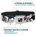- Made from high-density polyester and durable steel components, this collar is built to last and features beautiful vibrant artwork.