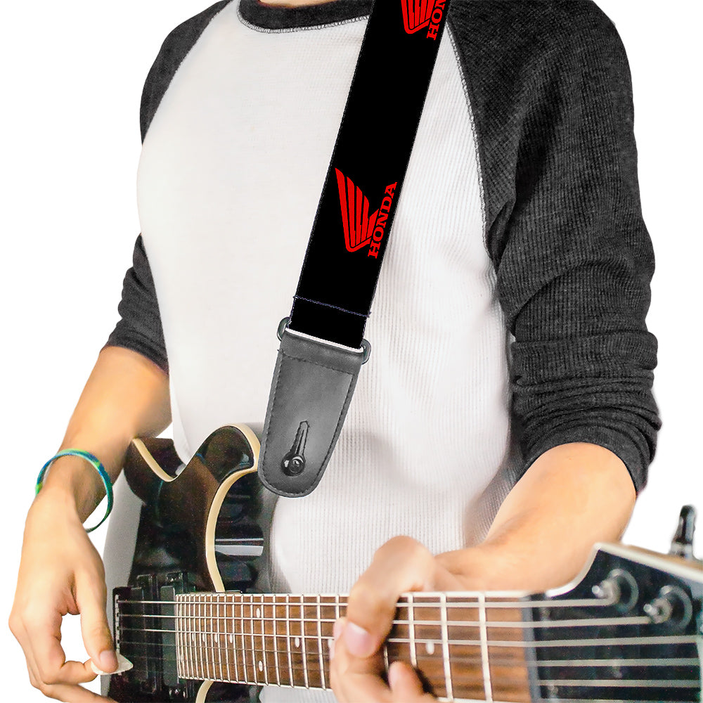 Guitar Strap - HONDA Motorcycle Logo Black Red