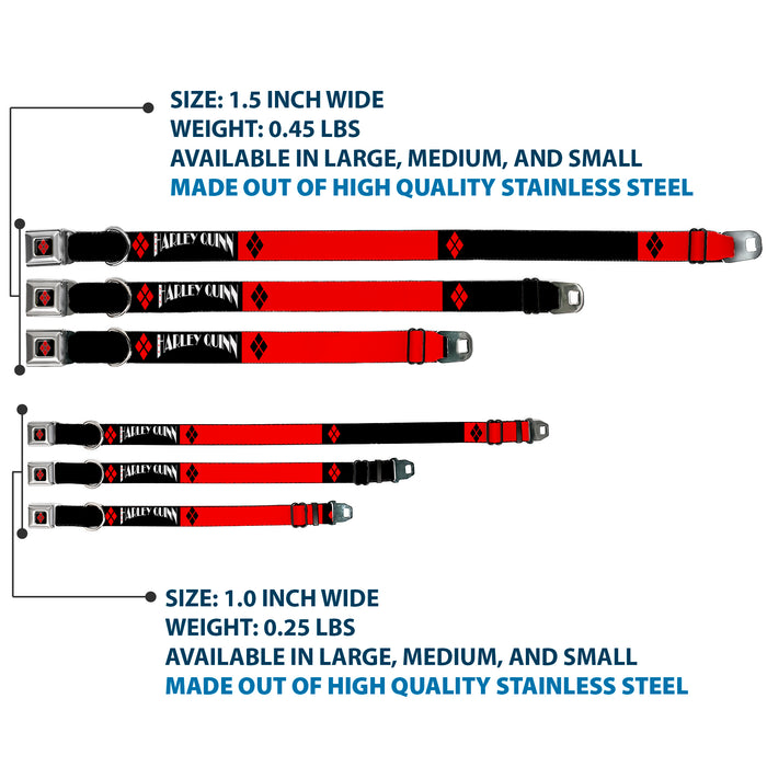 Harley Quinn Diamond Full Color Black Red Seatbelt Buckle Collar - HARLEY QUINN/Diamonds Black/Red/White