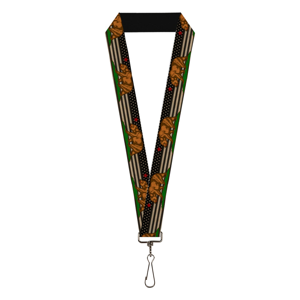 Lanyard - 1.0" - Cali Bear Star US Flag Stretch Black White Red